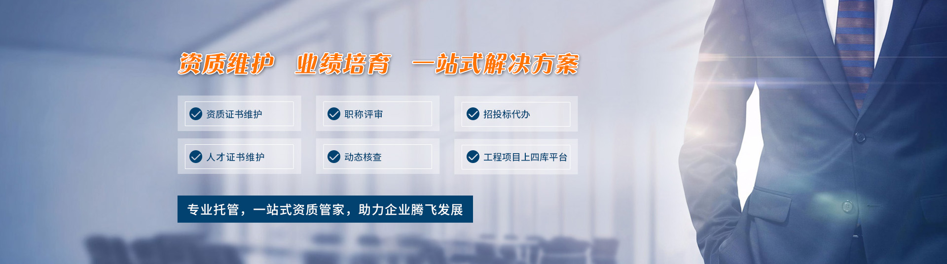 安徽萬業(yè)企業(yè)管理有限公司成立于2006年,20年來,一直致力打造為企業(yè)提供一站式企業(yè)服務(wù)平臺,幫助企業(yè)解決:資質(zhì)新辦、資質(zhì)升級、資質(zhì)增項、資質(zhì)維護(hù)、職稱評審、項目上平臺、公司注冊變更、代理記賬、財稅合規(guī)咨詢、審計評估、工程咨詢、標(biāo)書制作等多種業(yè)務(wù)。...